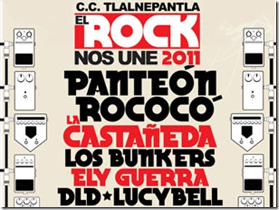 Como cada año, ya toca que sea el próximo festival el Rock nos Une 2011 en Tlalnepantla, los grupos mas representativos que estaran en el escenario son: Panteón Rococó, Nortec, Lucybell, La Castañeda, Los Bunkers, Ely Guerra, DLD, Pito Perez, She´s a Tease Prometen 12 horas de música continua.